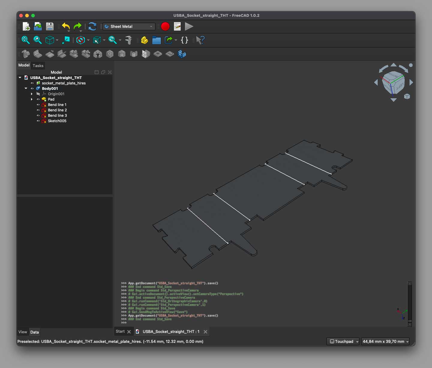 Learning to create 3D models in FreeCAD has been a priority for me during the last couple of months. I’ve been taking on increasingly complex modeling tasks, allowing me to test out new tools and workbenches. Here’s my first attempt at using the Sheet metal workbench.
