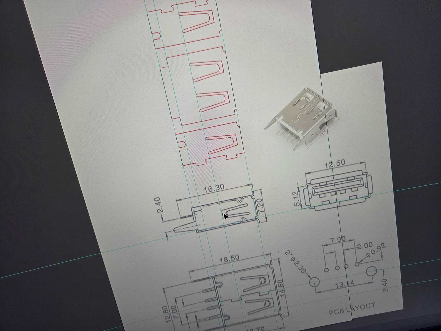 Hunting down parts for an electronics project often ends up involving 3D work. A through-hole, vertical USB connector that I recently acquired online posed a new 3D modeling challenge.